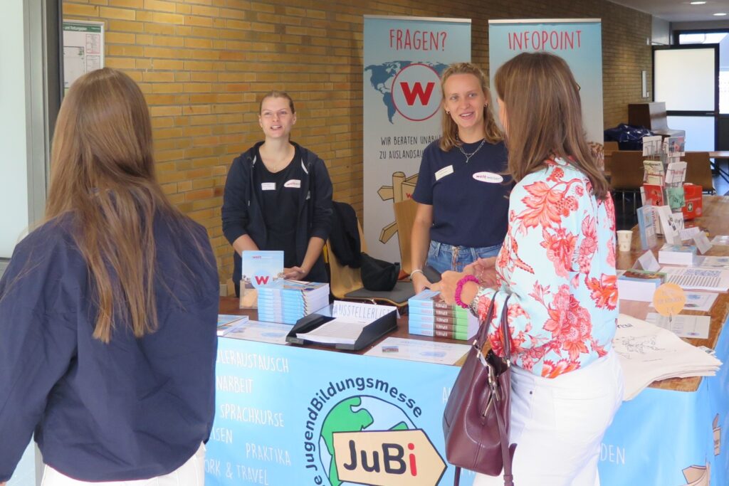 Die JuBi eröffnet den Schülerinnen und Schülern Frankfurts Möglichkeiten sich zu spannenden Programmen wie Schüleraustausch, High-School-Aufenthalten, Sprachreisen oder Work & Travel informieren zu lassen. Auf der Jugendbildungsmesse stehen internationale Bildungsexperten und ehemalige Teilnehmerinnen und Teilnehmer Rede und Antwort. Auch das weltweiser-Team freut sich wieder auf viele interessierte Besucherinnen und Besucher sowie deren Fragen.